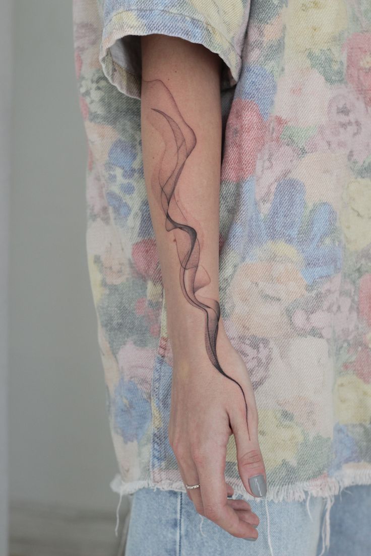 1. Airy Smoke Line Forearm Tattoo