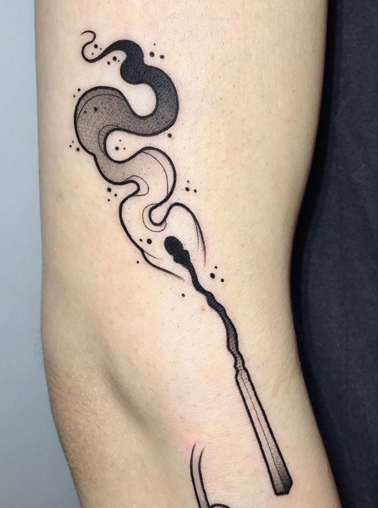 This design on your forearm gives a view of a cloud of perfume suspended in sunlight—thicker, moodier, and more artistic. It is perfect for you if you have a fascination with the smoke effect but would like something more substantial than just a thin outline on your body. As compared to other delicate smoke tattoos, this one is going to fade very well because of the darker spots present in it. It is ideal for wearing on the outer forearm, as people can enjoy its effect of a gradient. It should be placed alongside minimal accessories and nude nails.