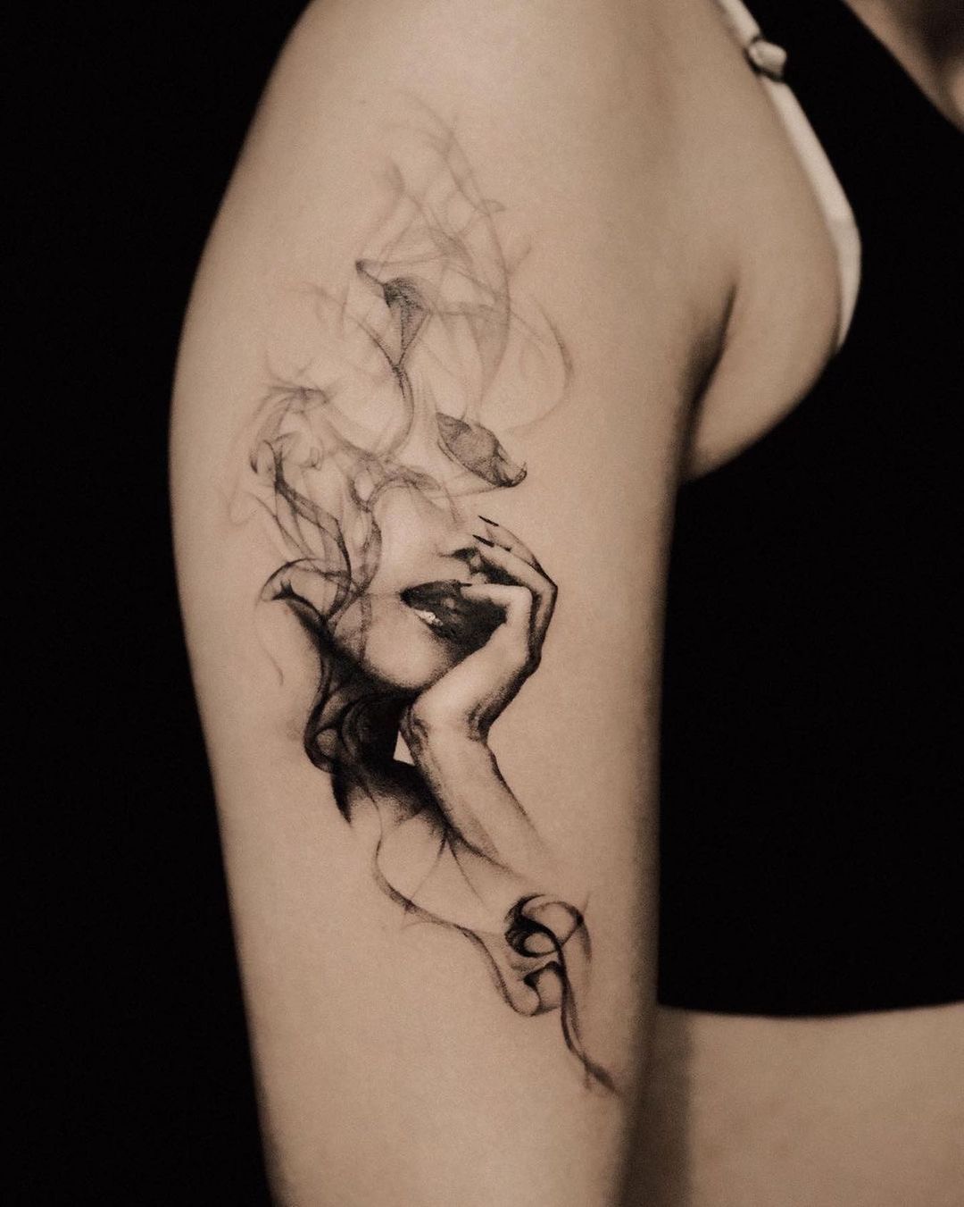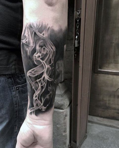 This is more dramatic than any of the other types of smoke art, and its depiction is more illustrative and more fluid, as if melted down from its ink composition and is currently flowing towards its resting place on the arm of its wearer. It has that artsy, urban feel, yet still maintains its elegance due to its neatly managed details and lines. If you are one of these women who pair eye-catchers like artistically cut trousers along with sports gear such as sneakers, then this art is one of a kind, as it exudes an air of both elegance and ease, of “artsiness” and tranqu