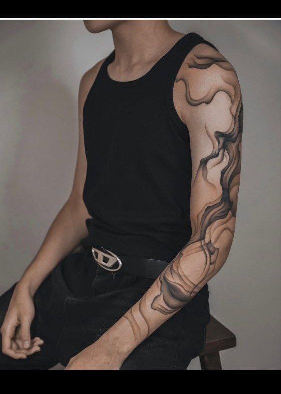Unlike the previous one, this design is more of a statement—bold and fluid, as though loops of heavy smoke engulfed your whole arm, as if they are liquid themselves and merge into each other as they fall into shadow at each turn of their formation. It is very fashion-forward, and when paired with black clothing, this tattoo is going to be more of the “texture” of the clothing itself, and this is effortless, bold, and organic due to its curvaceous
