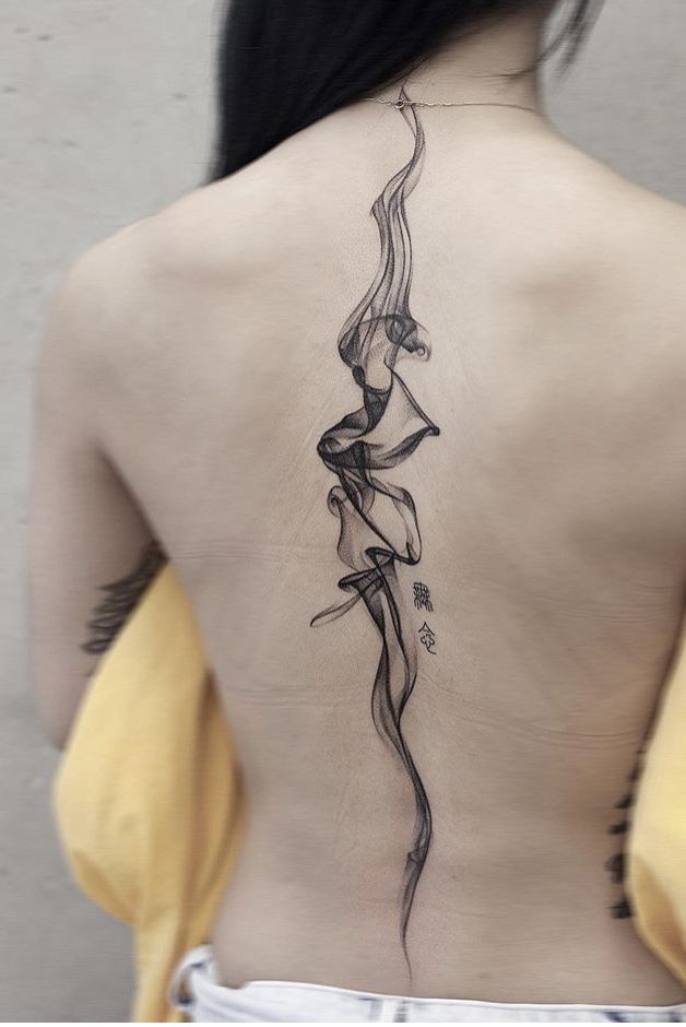 21. Vertical Spine Smoke Tattoo