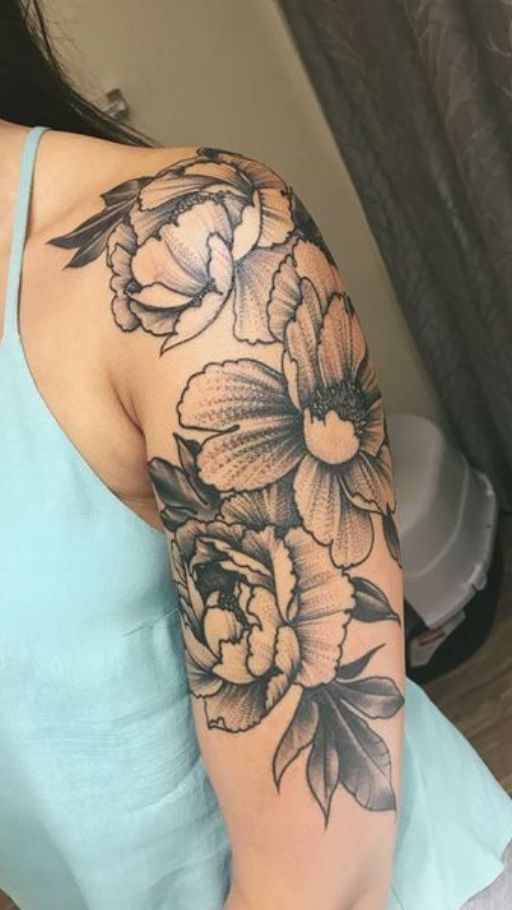 10. Bold Peony-and-Daisy Upper-Arm Floral Quarter Sleeve