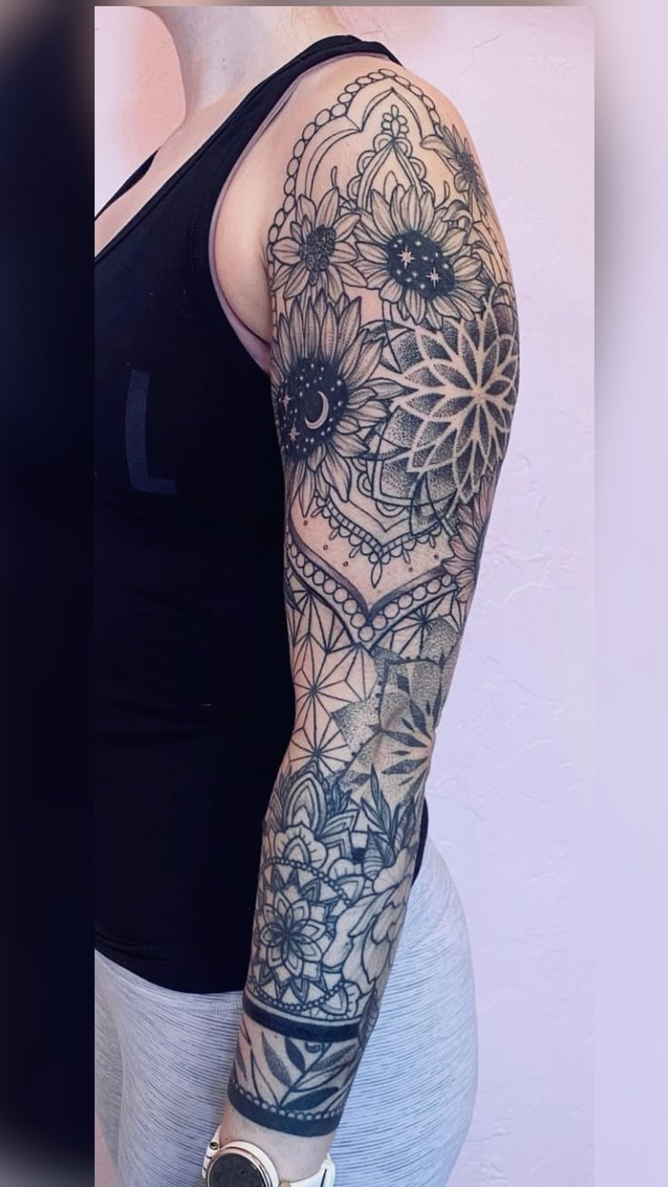 9. Celestial Sunflower + Mandala Sleeve Statement