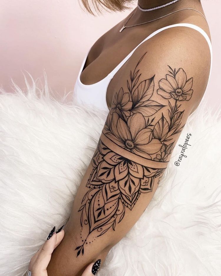 The emotional payoff here is enormous—if you want to feel more put-together and powerful in your sleeveless tops, this is one of those ideas that elevates your vibe on the spot. It’s ideal if you’re a woman who likes classy women’s ink in the upper arm region, particularly if you have a penchant for clean-looking outfits and want your tattoo to be your statement accessory. Keep the petals big, request soft gradients, and leave a little bit of negative space so the flower blobs remain crisp and clear as decades pass.