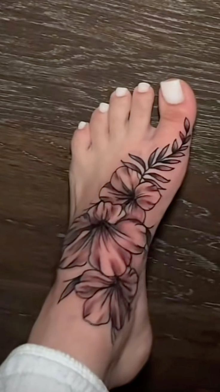 25. Soft Floral Foot Tattoo With a Natural Flow