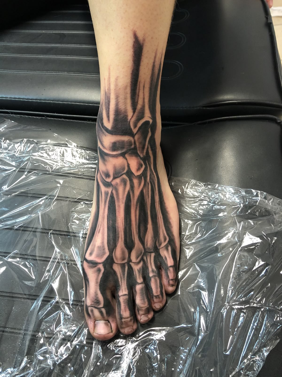 17. Anatomical Skeleton Foot Tattoo With Edge