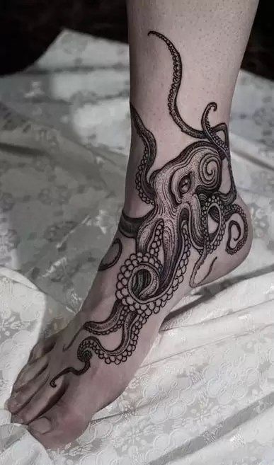 10. Intricate Octopus Foot Tattoo With Artistic Detail