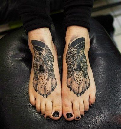 These matching foot tattoos feel bold, artistic, and deeply intentional. The mirrored winged creatures create a strong visual impact, almost like armor for the feet, yet there’s still elegance in the symmetry. It gives off a sense of protection and confidence, as if each step is grounded and purposeful. This is the kind of design that feels empowering rather than decorative.