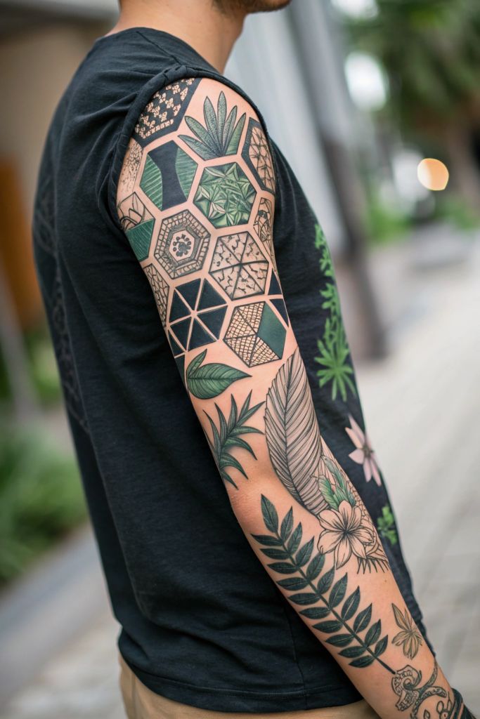 10. Geometric Botanical Sleeve for Men