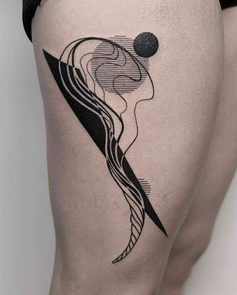 21. Geometric Flow Thigh Tattoo