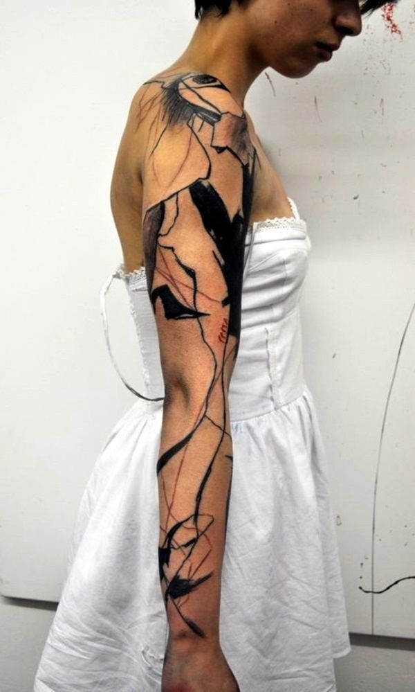 In this set of 27 ideas, you’ll see everything from fine-line scribbles to designs unique enough for a full sleeve. Some lean floral (soft flower and botanical hints), others go graphic with stencil-inspired layers, and a few bring in subtle motifs like a butterfly or dragon silhouette—still abstract, still modern. Popular placements include the arm, shoulder, hand, back, and leg, depending on whether you want a quiet statement or a bigger canvas.