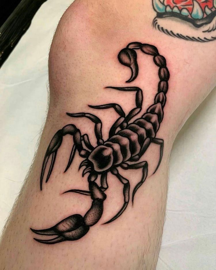 This look leans beautifully into traditional tattoo aesthetics, which have always favored bold lines and strong silhouettes. For anyone exploring tattoo ideas that feel timeless and masculine but are still stylish for women, a scorpion like this works incredibly well on the arm or calf. The high contrast keeps the design crisp over time, which is exactly why old-school-inspired pieces like this remain a favorite among both men and women.