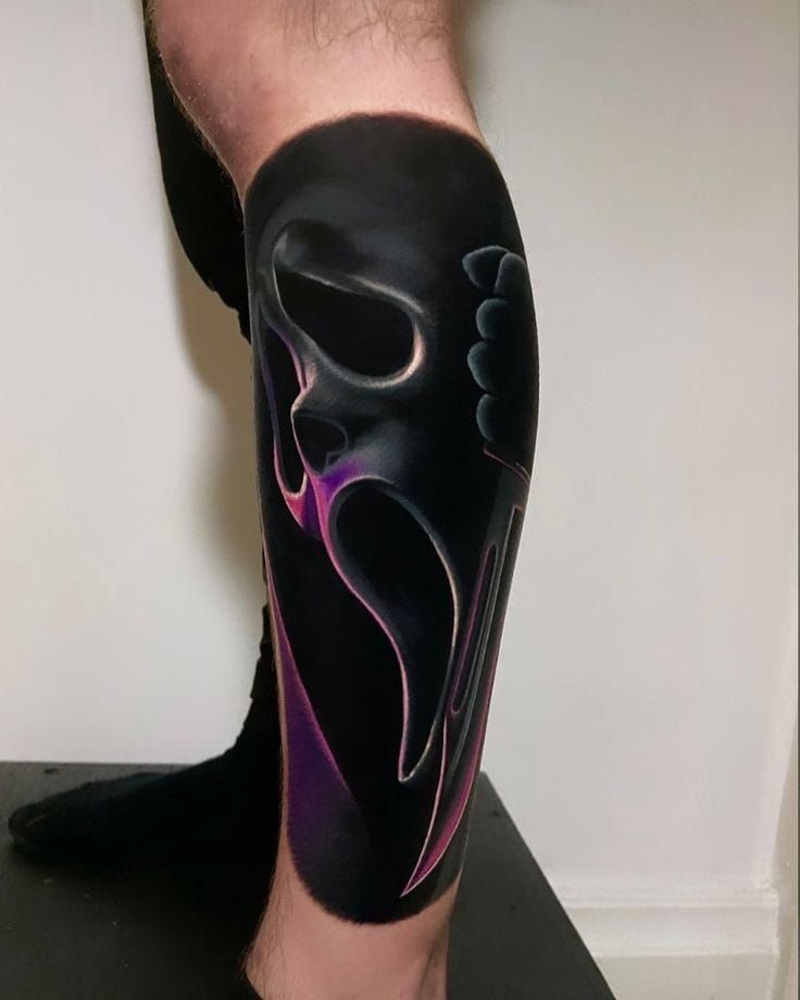 Pop culture tattoo art has exploded in popularity, especially when rendered in bold black shading like this. It’s a fantastic example of how modern tattoo designs can blend illustration and fandom. For anyone wanting a strong, stylish character tattoo, this one delivers serious attitude.
