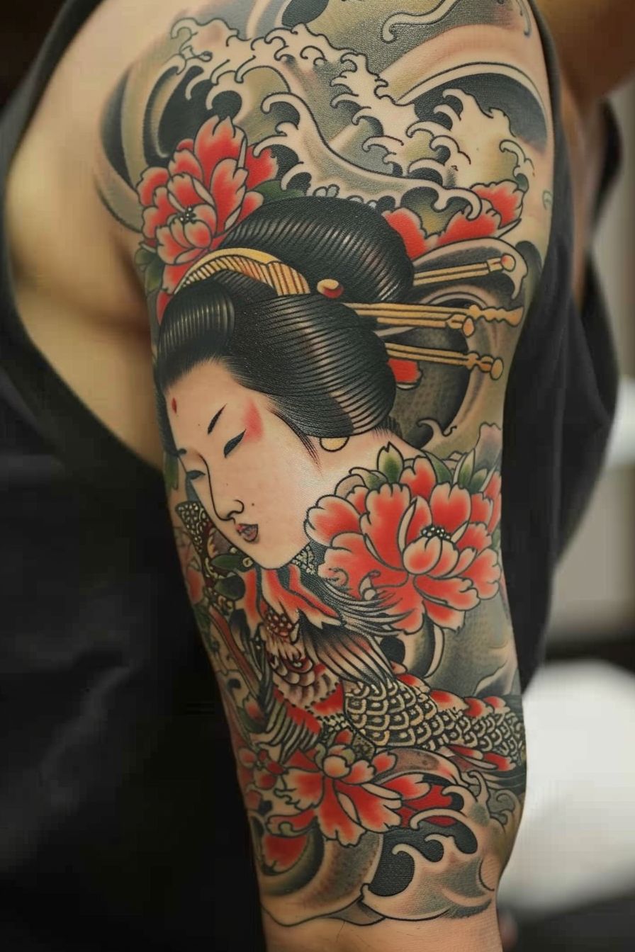 22. Traditional Geisha and Koi Full Sleeve Story