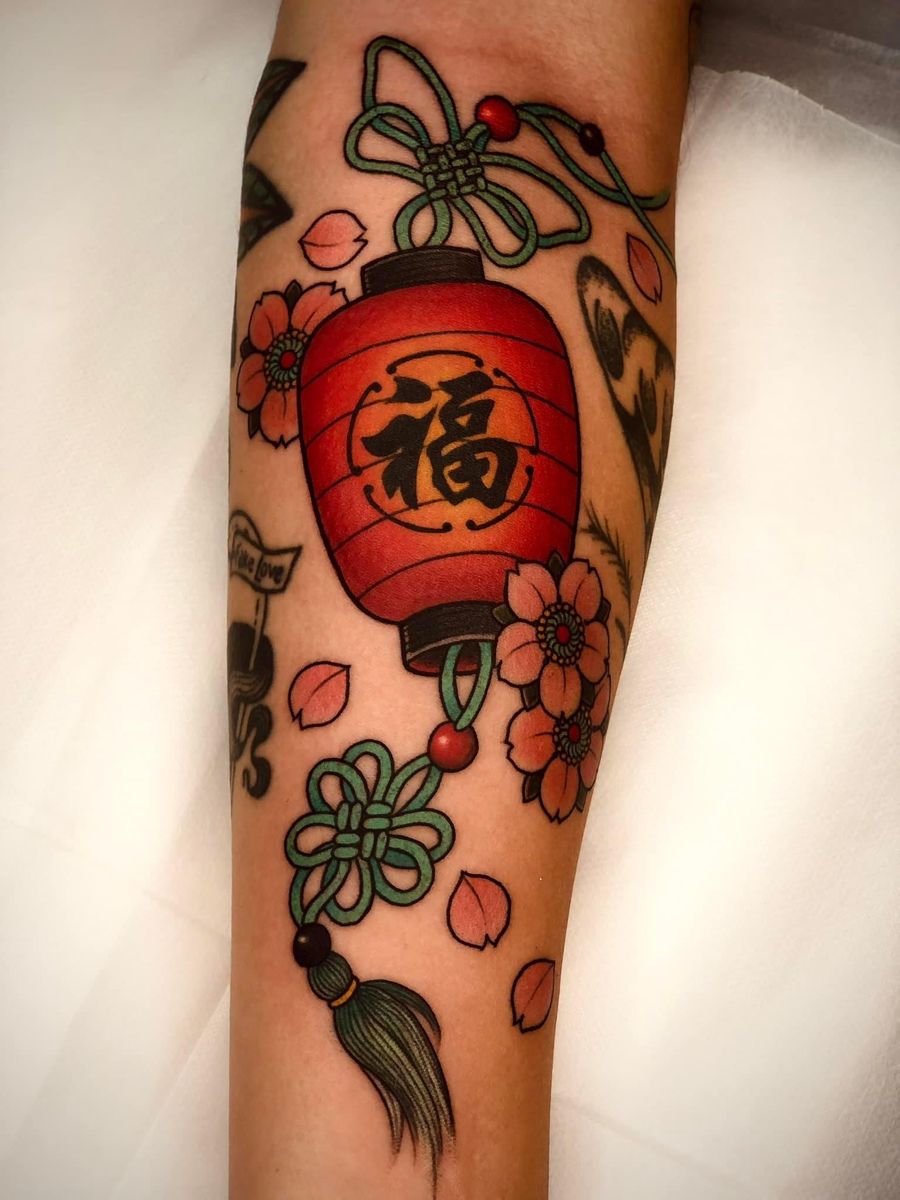 17. Red Lantern and Sakura: A Classic Lucky Charm Idea