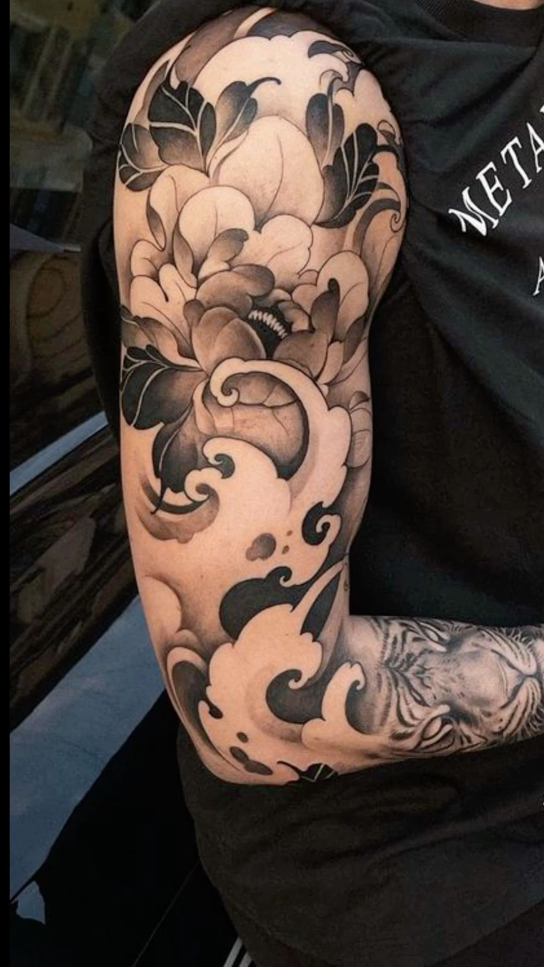 8. Black and Grey Peony Wave Sleeve