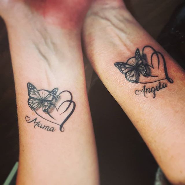 This heart and butterfly design looks as if it came straight from the pages of a diary—soft, feminine, and infused with a wealth of family history. The flowing curves envelop each name as if they’re a loving hug,” making a tattoo of this type “one of those mother-daughter tattoo designs that feel incredibly sweet,” particularly if “lovehands” mean something to both of you.” This design is attitude in the form of pure tenderness mixed with a hint of playfulness. Motion is added through the wings of the butterfly, with the outline of a heart that keeps everything straight and simple, making this easily readable. It is perfectly geared if you’d like a tattoo that is dainty in nature yet powerful enough that it can hold sway as a standalone tattoo on the wrist itself. No matter what kind of fashion persona you possess, from a denim & tee kind of crowd to something more dressed-up and dressed-to-impress, these tattoos will blend effortlessly as if they belonged there in the first place.
