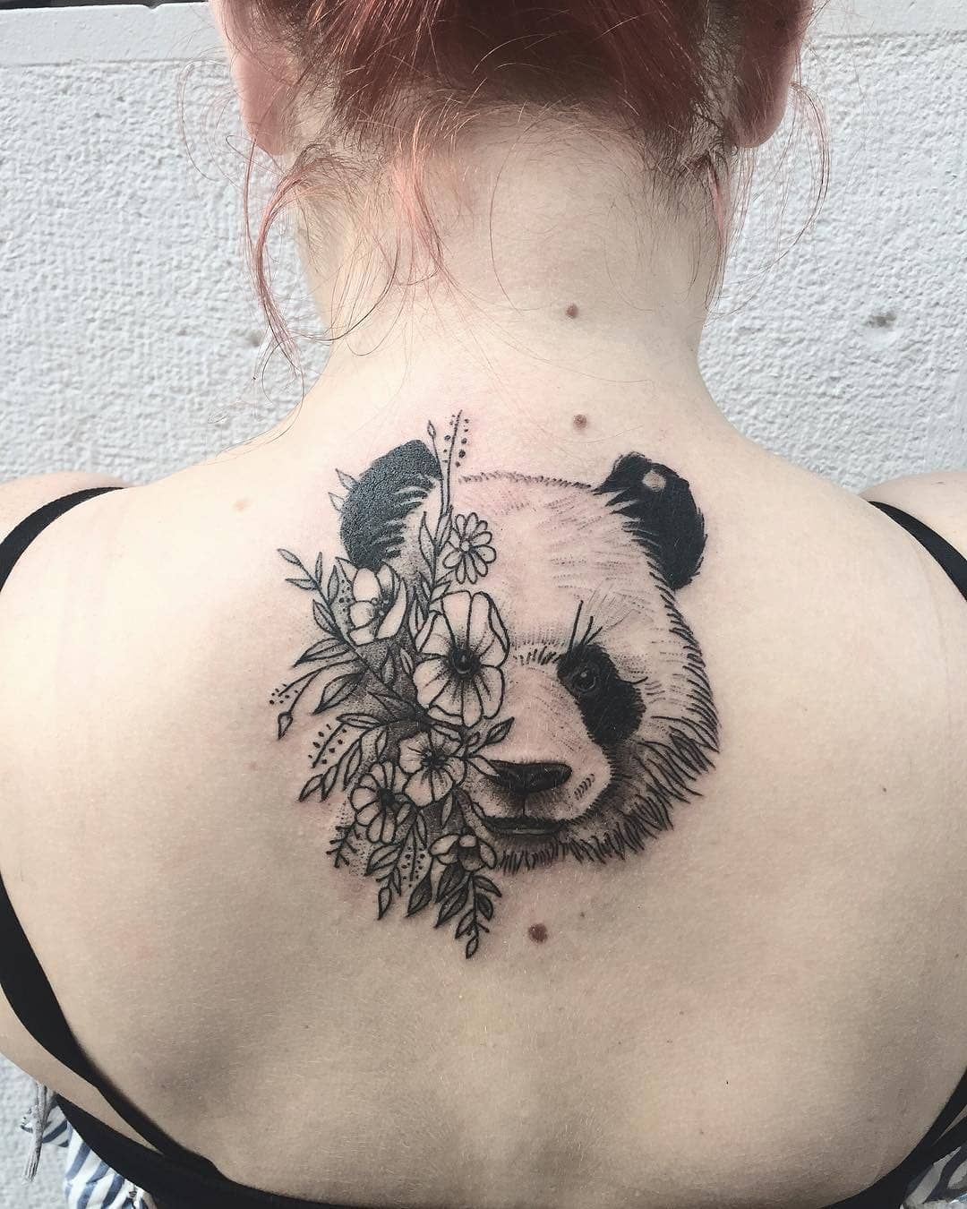 Comparison: compared with full-body pandas, this close-up realistic portrait delivers impact in less space. Pair with fine-line florals or traditional petals; a shoulder or upper back placement flatters curves and frames necklaces or open-back tops beautifully.