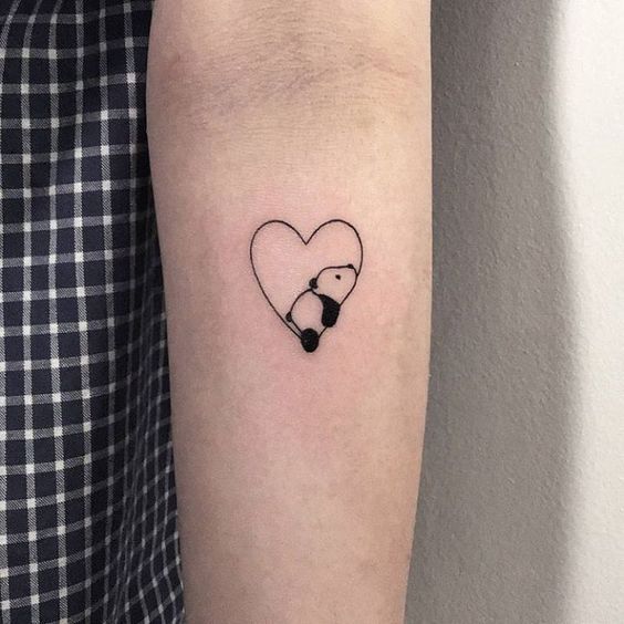 Sweet and whisper-light, a single-line heart holds a tiny panda like a secret. The composition feels thoughtful and intimate—gentle curves, clean spaces, and just enough black to read at a glance. It’s romance with a wink rather than a shout.