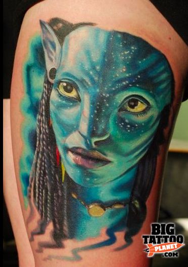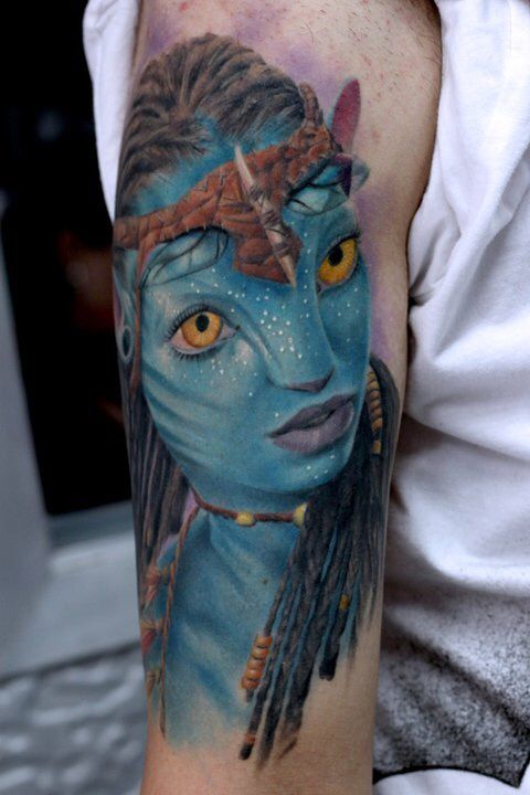 To keep that dreamy quality, talk to your artist about soft edges and gentle gradients instead of sharp outlines. A little extra contrast in the eyes and lips will keep the portrait from feeling washed out, especially as the tattoo heals and settles into your skin. This design suits women who want an expressive, art-forward piece that doesn’t feel too harsh or graphic—something that can peek out under a cardigan or denim jacket without overpowering your outfit. If you’re drawn to Avatar tattoo ideas that look more like fine art than fan art, this one is a gorgeous fit.