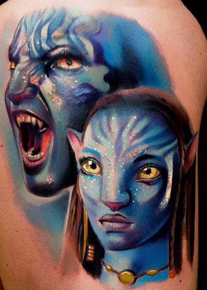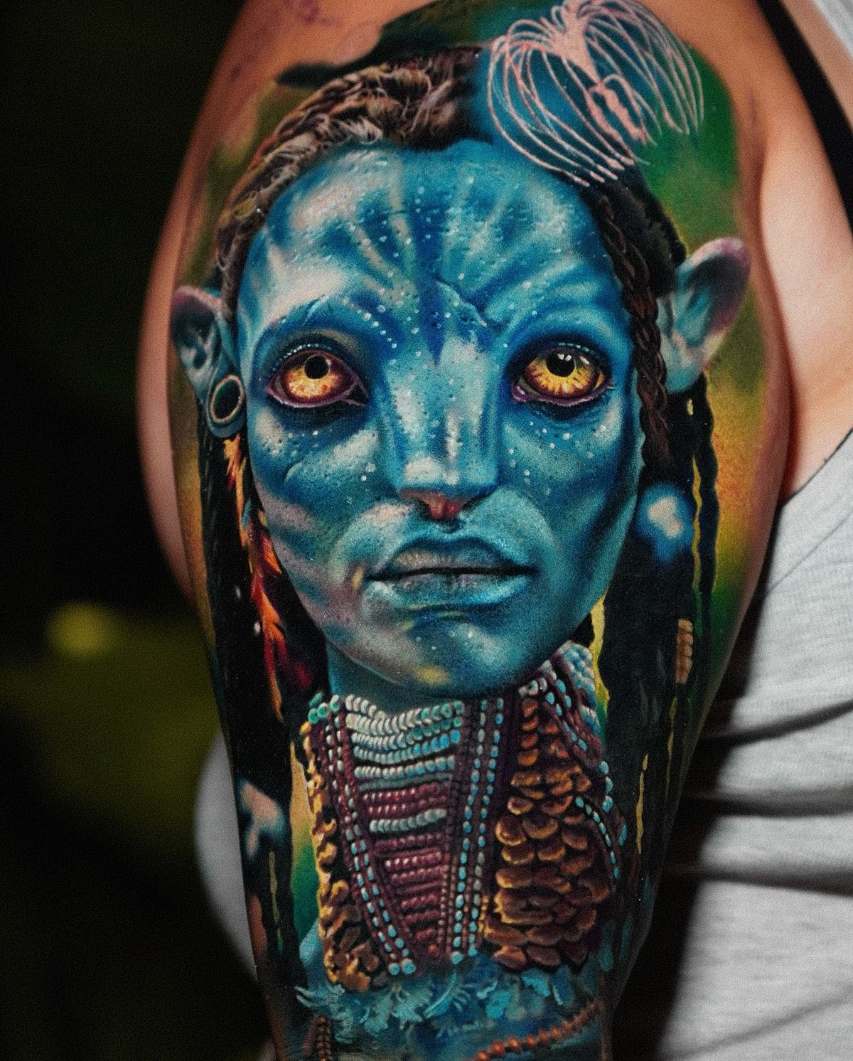1. Fierce Na’vi Dual Portrait Shoulder Tattoo