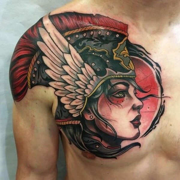 8. Realism Athena Helmet Portrait Tattoo