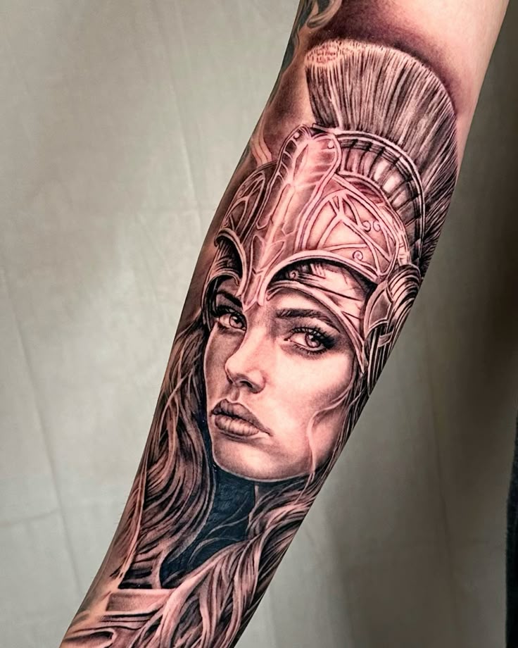 19. Full-Armor Athena Forearm Warrior Tattoo
