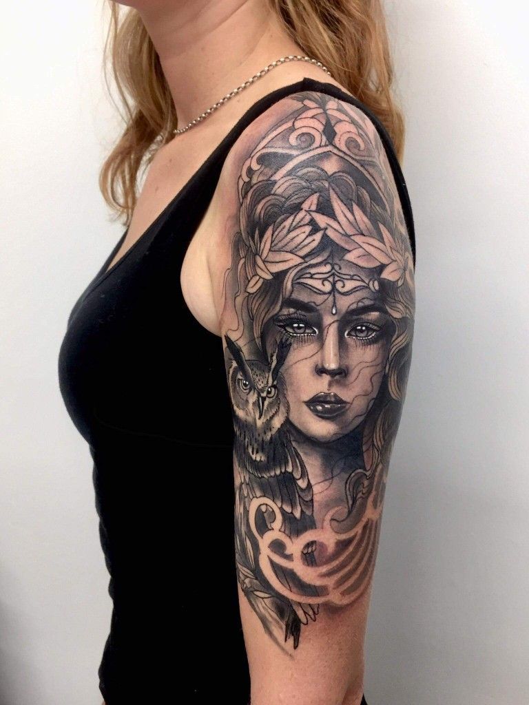 13. Athena and Owl of Wisdom Half-Sleeve