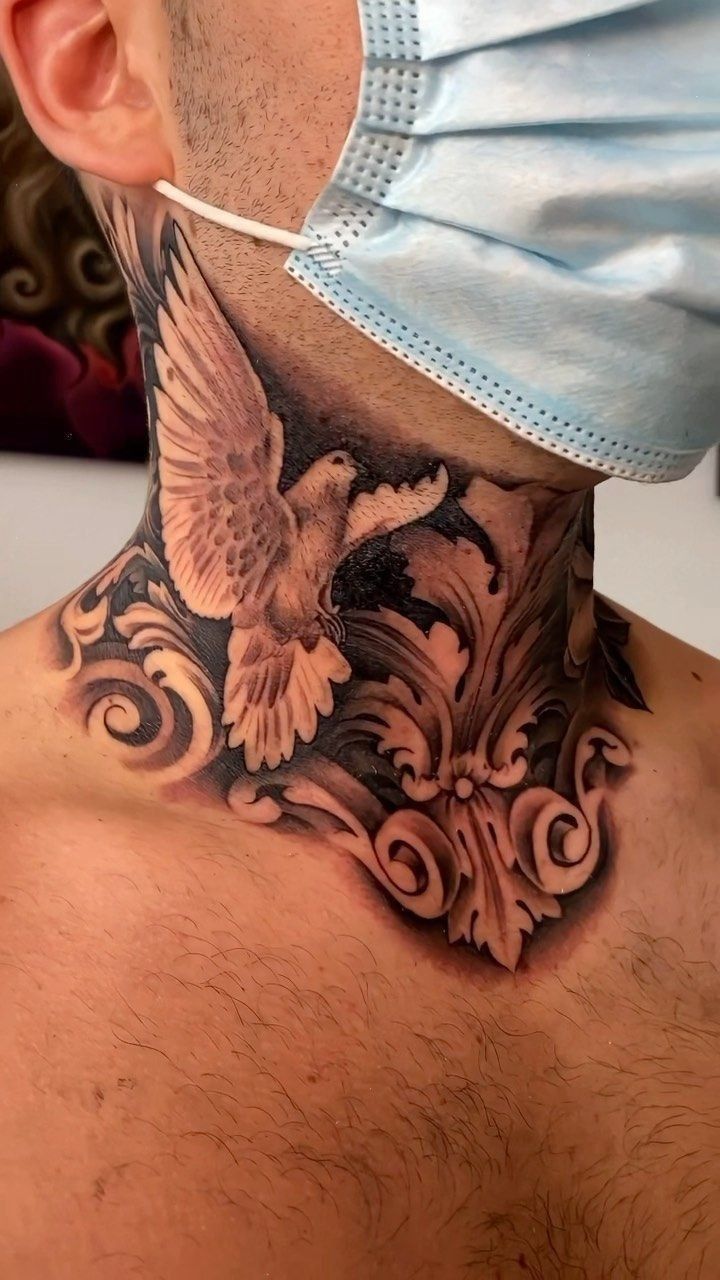 This style has long been a favorite among men’s ideas for bold neck tattoos. A men’s design like this works best with strong contrast and experienced shading techniques to keep the ornamental details crisp over time. For guys who appreciate classic symbolism mixed with modern tattoo craftsmanship, it’s a design that carries both visual weight and personal meaning.