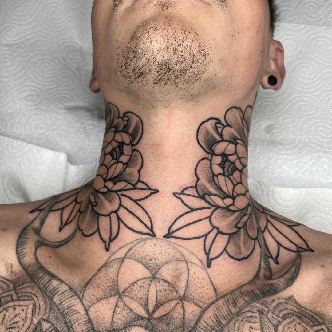 19. Symmetrical Floral Neck Tattoo for Men