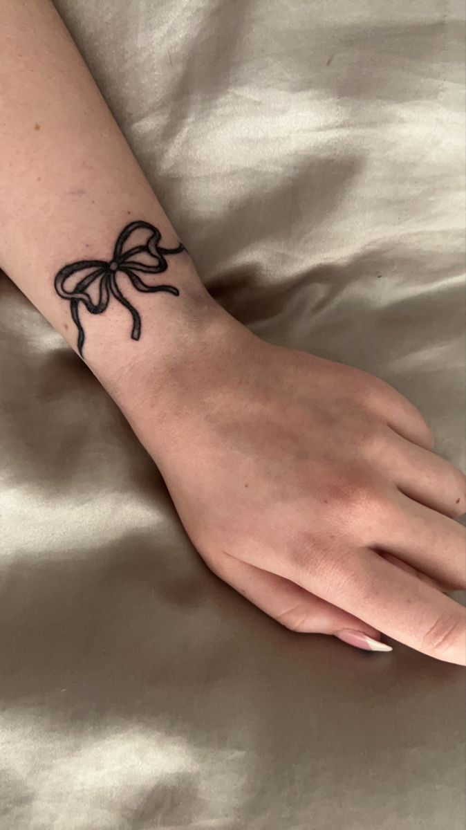 A wrist tattoo is not shy, so it is best for someone who enjoys seeing their ink often. This design works because it is Simple enough to read at a small size, yet the loose bow shape keeps it from feeling plain. It pairs especially well with rings, bracelets, and manicures because all the attention naturally gathers around the hand. If you want a Dainty tattoo with a little more visual strength, this is a smart middle ground.