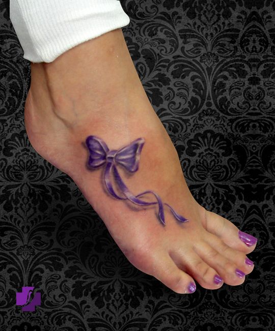 4. Purple Foot Bow Tattoo
