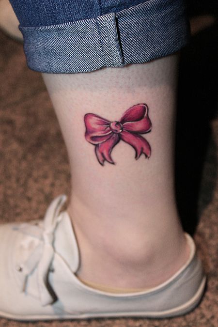 11. Small Ankle Bow Tattoo