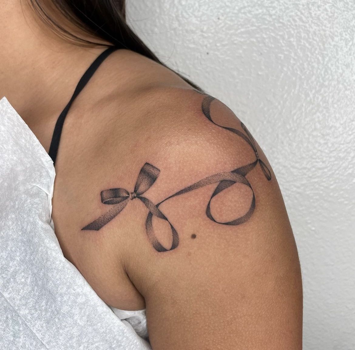 9. Flowing Shoulder Bow Tattoo