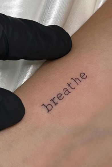 There’s a tenderness in this tiny breathe tattoo that feels almost protective. The delicate lettering sits quietly on the skin, like a reminder whispered rather than spoken aloud. It carries a Still, grounding energy—the kind you reach for during anxious mornings or long, overwhelming days. Nothing about it is loud, yet emotionally it speaks volumes.