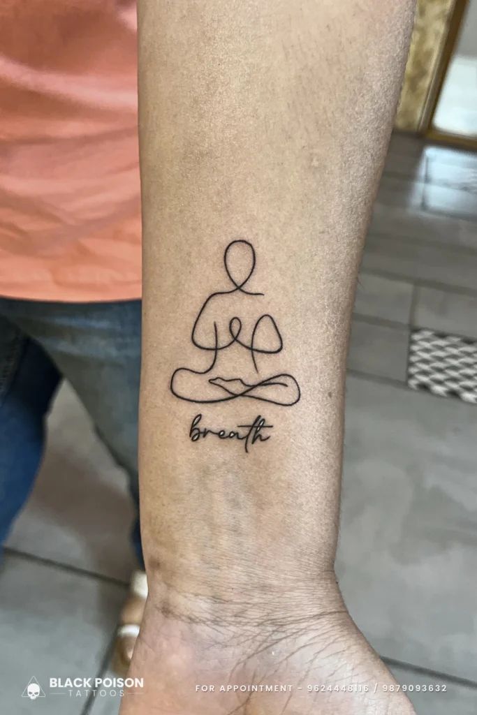 This artistic line figure in meditation above the word “breathe” feels deeply spiritual yet beautifully modern. The continuous line suggests flow, presence, and inner awareness—like a quiet visual mantra living on the skin. It’s thoughtful, symbolic, and emotionally grounding all at once.