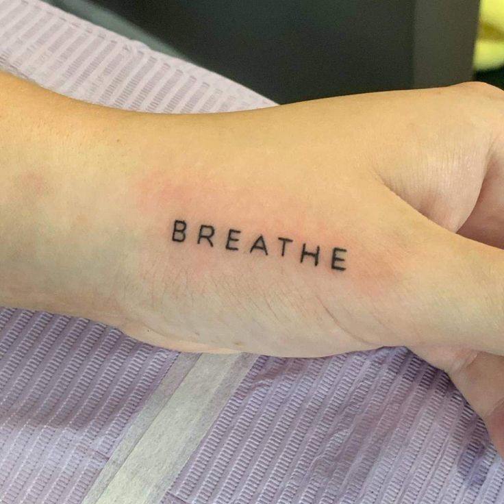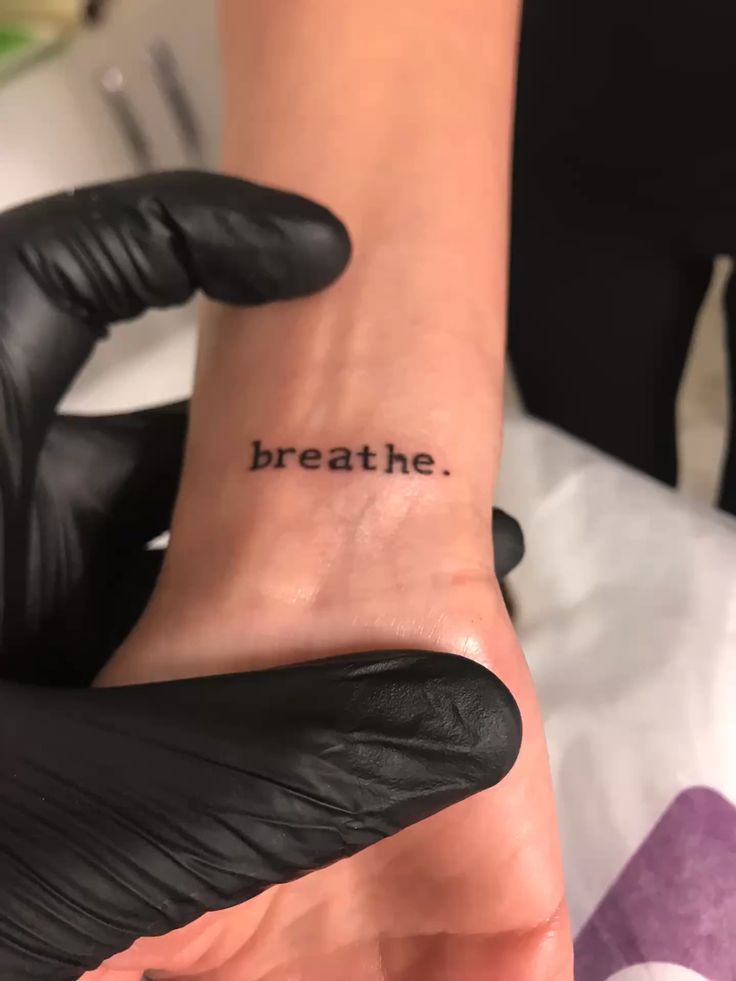 This “breathe” tattoo on the wrist feels raw and honest. The handwritten-style script gives it a personal touch, like something you scribbled to yourself during a quiet moment. It’s subtle, emotional, and deeply human, the kind of tattoo that feels more like a promise than decoration.