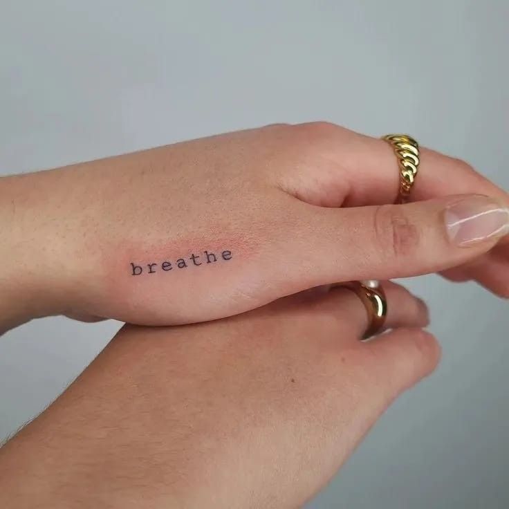 This tiny “breathe” tattoo has a quiet confidence to it. Placed delicately on hand, it feels like a secret you carry in plain sight. It doesn’t shout for attention, but once you notice it, you can’t unsee its calm presence. The simplicity gives it a modern, almost poetic feel, like a pause button built right into your skin.