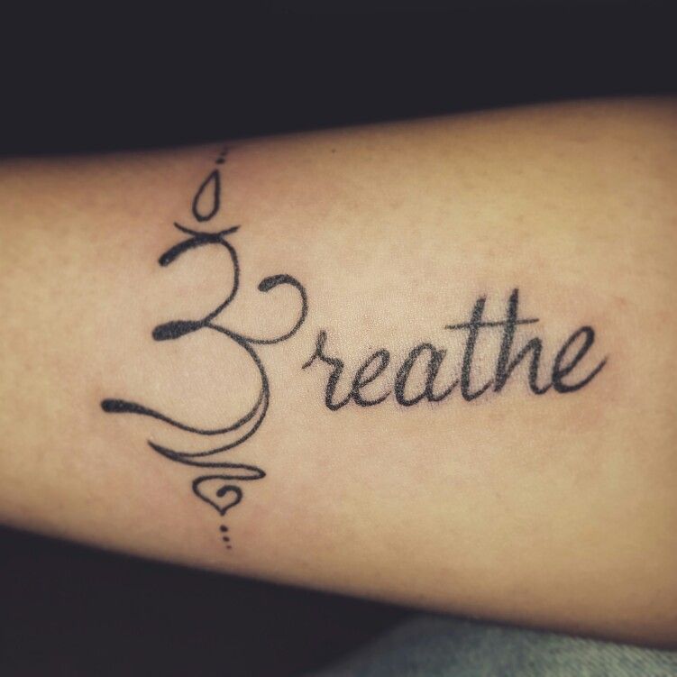 Blending the Om symbol with the word “breathe” creates a tattoo that feels like pure calm in visual form. The flowing curves and balanced composition give it meditative energy, as if the design itself is exhaling. Emotionally, it speaks to peace, grounding, and quiet self-trust.