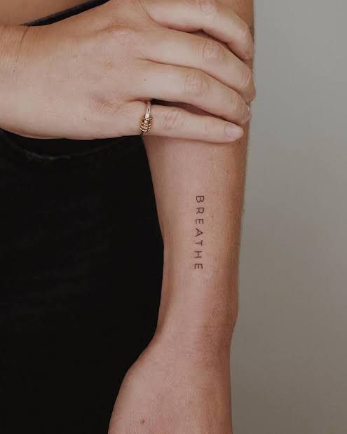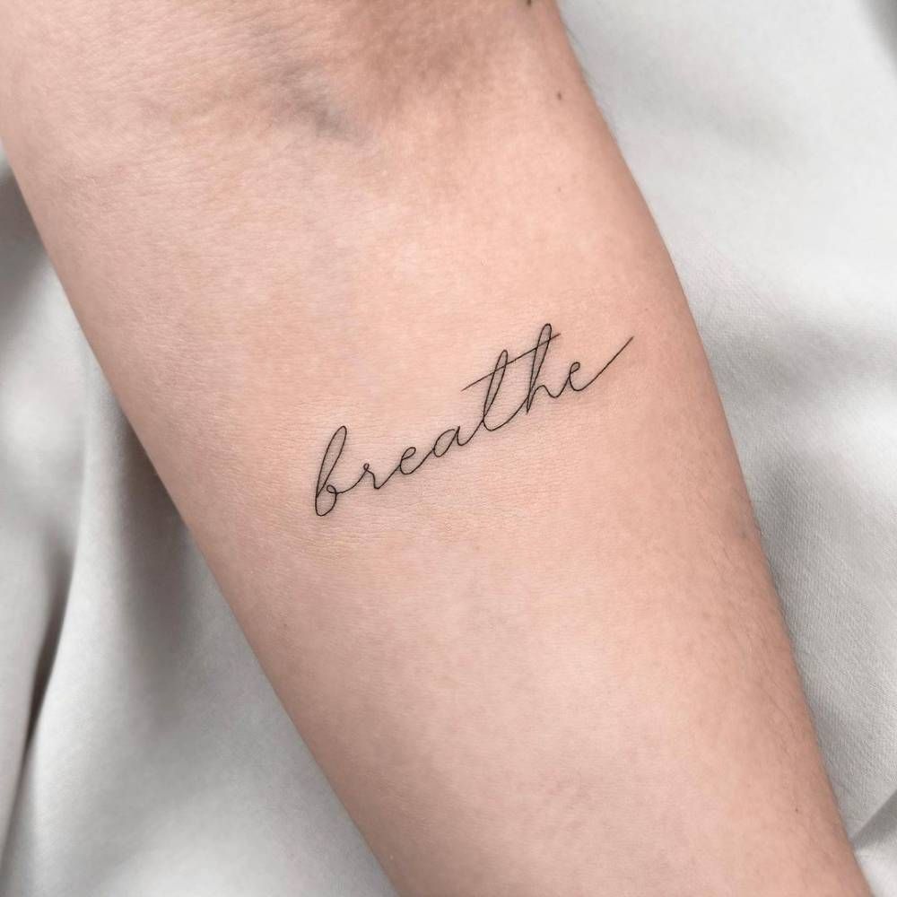 22. Ultra-Minimal Inner Arm BREATHE Tattoo