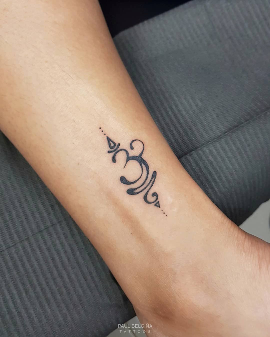 For those drawn to meaningful symbols, this works well as a wrist or inner arm tattoo. It resonates with ideas like Pause to reset and Om meditation practices. The design suits both men and women who want something symbolic yet understated, and it ages beautifully thanks to its balanced, flowing structure.