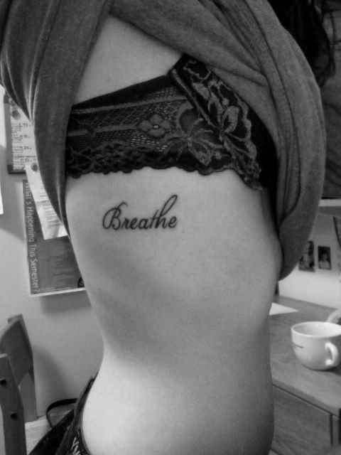 Placed along the ribcage, this breath tattoo feels deeply intimate—like something meant only for you. The flowing script follows the body’s natural curve, creating a soft, feminine rhythm that mirrors the rise and fall of breath itself. It’s emotional without being dramatic, sensual without trying too hard.