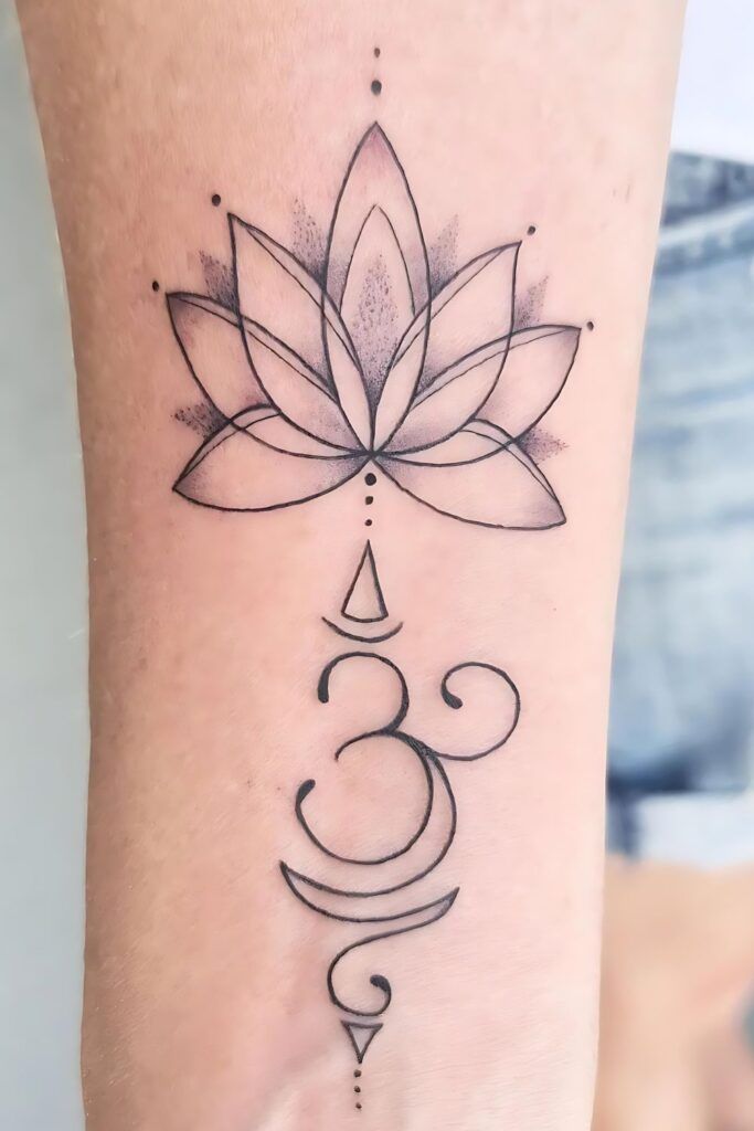 This spiritual Design resonates with Sanskrit symbolism and mindful living. It’s meaningful for both men and women seeking tattoos connected to meditation, Stillness, or personal healing. Placed on the forearm, it remains visible enough to guide daily calm without overwhelming your style.
