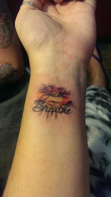 This Just Breathe tattoo carries an emotional softness that feels almost like a deep exhale after tears. The subtle wash of color behind the lettering gives it a gentle Water-like glow, turning a simple phrase into something tender and healing. It feels personal, vulnerable, and quietly strong all at once—like choosing calm even when life feels messy.