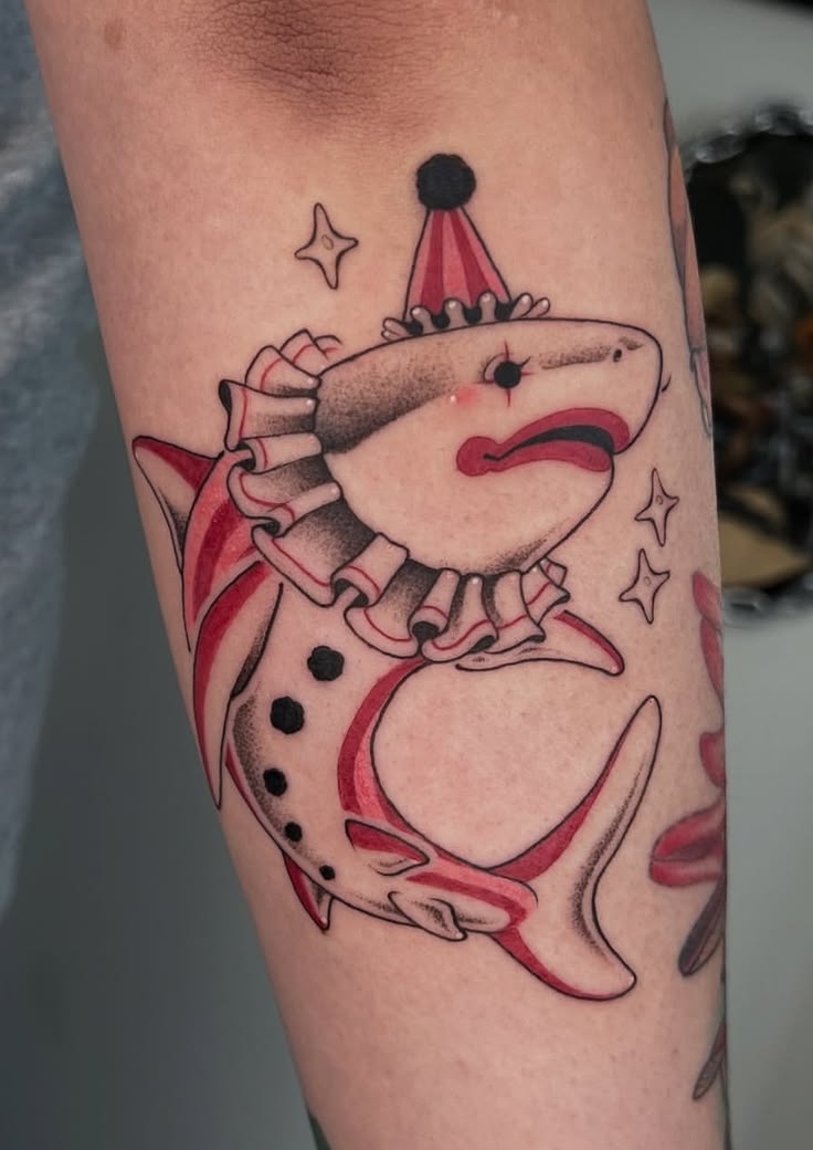 10. Cute Circus Shark Tattoo