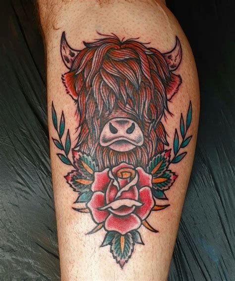 If you’re leaning into 2025 trends, American traditional-inspired colorwork is having a big moment again—especially when it’s paired with unexpected subjects like a Highland cow. The saturated tones and strong outlines age well, and it’s an amazing pick if you want a tattoo that reads clearly from a distance. This is one of those cow tattoo ideas that never looks “dated,” just bold.