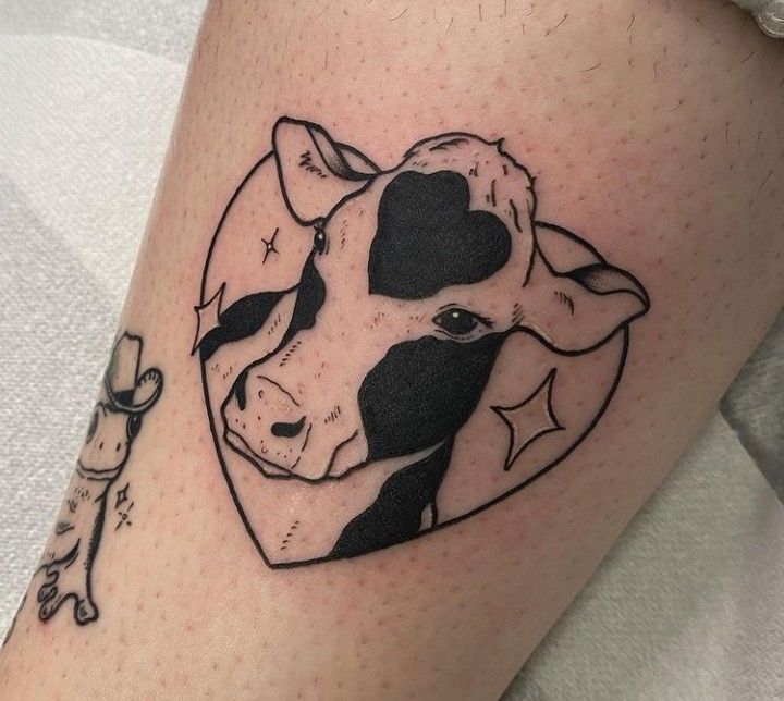If you’ve been saving cow tattoo ideas to your phone for months and keep hesitating, try this kind of minimalist option. It’s simple enough to feel safe but still has charm and meaning. It’s also an easy yes if you want small, simple ink that fits into your life without overthinking placement—inner arm, wrist, or ankle all work beautifully for a discreet, polished look.