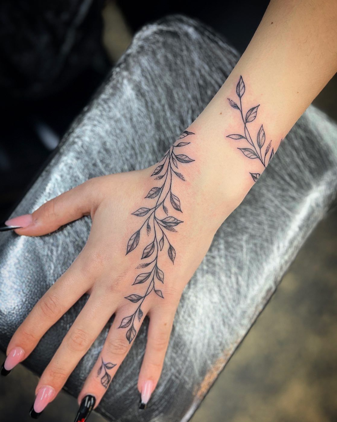 This Ivy-inspired design feels delicate and intentional, like a quiet signature rather than a loud statement. It gives off artistic, thoughtful energy—someone who appreciates subtle beauty and isn’t afraid of meaningful placement.