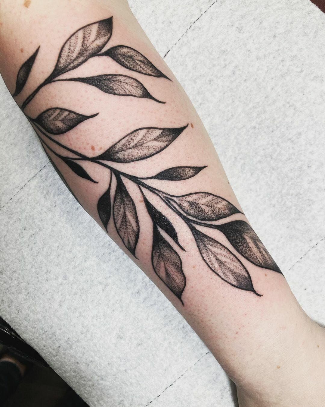 There’s something effortlessly chic about this flowing branch design. It wraps gently around the arm like a quiet thought, never loud but always present. The dotted shading inside the leaves adds softness, giving the whole piece a calm, balanced energy that feels very wearable day to day.