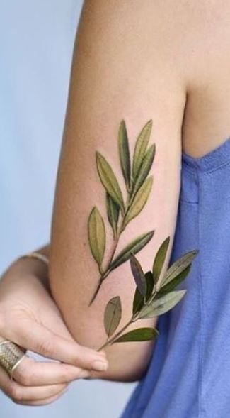 Type 8: Comparison—Compared to a simple olive branch or a single stem, a shoulder wrap like this feels more like a statement piece and less like a minimal accent. It also reads more “styled,” almost like a permanent accessory. If you love color tattoos but don’t want a full sleeve, this is a perfect middle ground: impactful from the front and side but still clean and wearable.